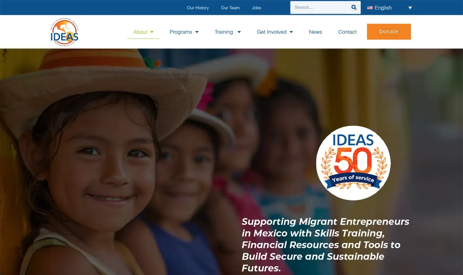 When the Institute for Development, Evaluation, Assistance and Solutions (IDEAS) engaged Yaberra Consulting, their flagship website was unable to surface the organization’s current focus on helping immigrant entrepreneurs in Mexico build their business and support their families. Potential donors also struggled to find a clear pathway to giving.